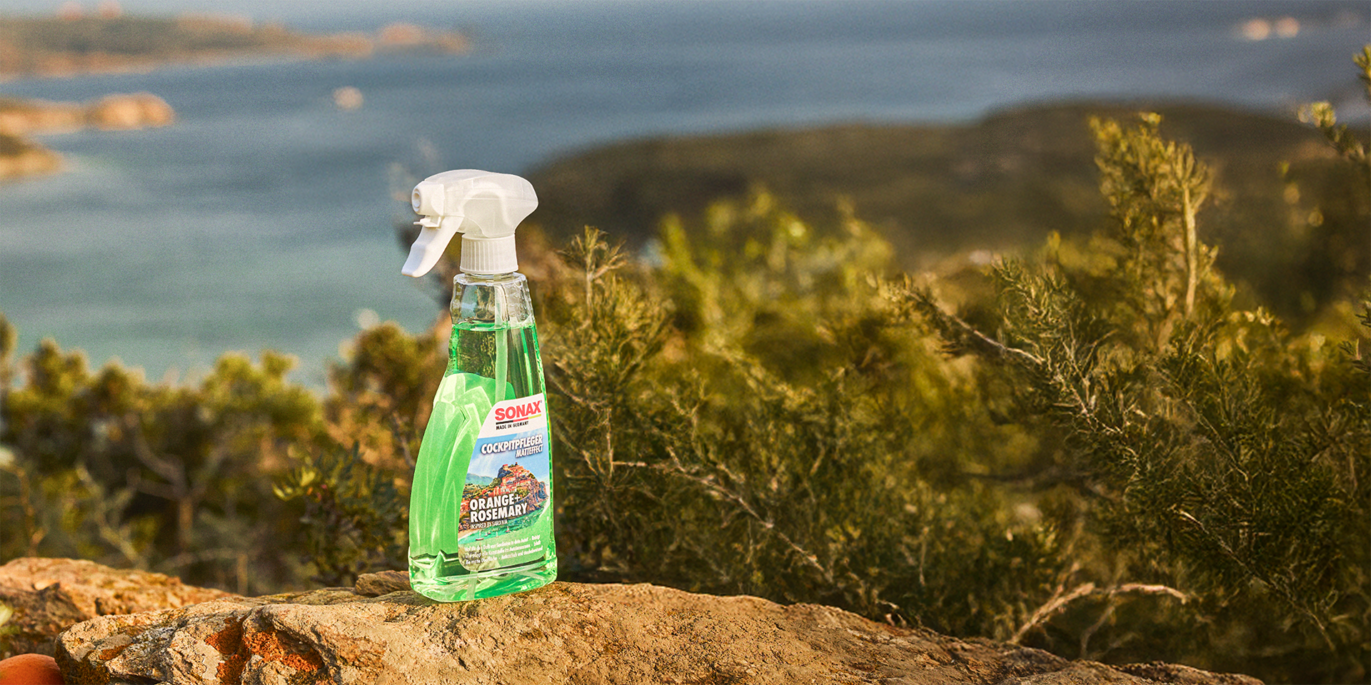 Inspiriert von einem echten Sardinien-Roadtrip hat SONAX den Duft mediterraner Straßen eingefangen. Eine Komposition aus Orange und Rosmarin, die Sonne, Küste und das Gefühl von Freiheit in dein Fahrzeug bringt. Sorgt für Sauberkeit in Sekunden – und macht jede Fahrt zu einem ganz besonderen Moment.