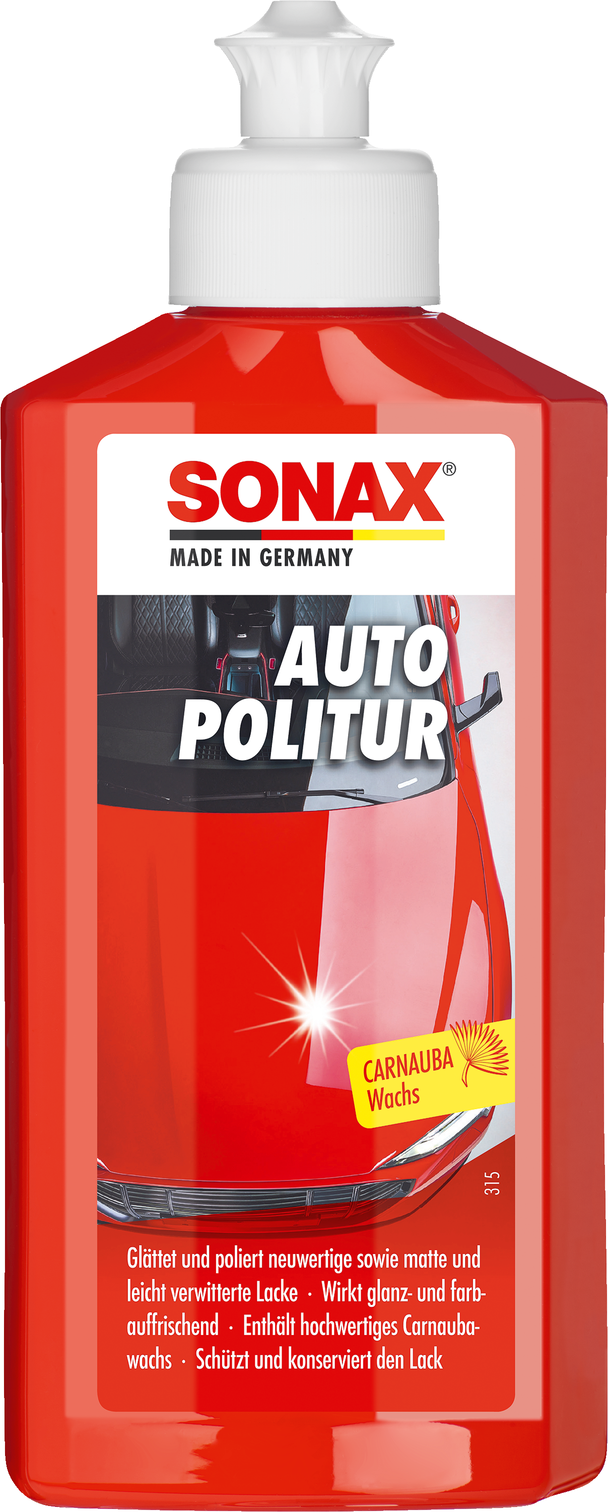 Wagen mit SONAX GlanzShampoo waschen. Flasche vor Gebrauch schütteln. Mit SONAX P-Ball oder SONAX ApplikationsSchwamm auf den feuchten oder trockenen Lack dünn auftragen und sofort mit mittlerem Druck verreiben. Immer zusammenhängende Bauteile (z.B. Motorhaube, Dach) in einem Arbeitsgang behandeln. Abschließend die Politurrückstände mit dem SONAX MicrofaserTuch außen entfernen. Nicht auf unlackierte Kunststoffteile auftragen.