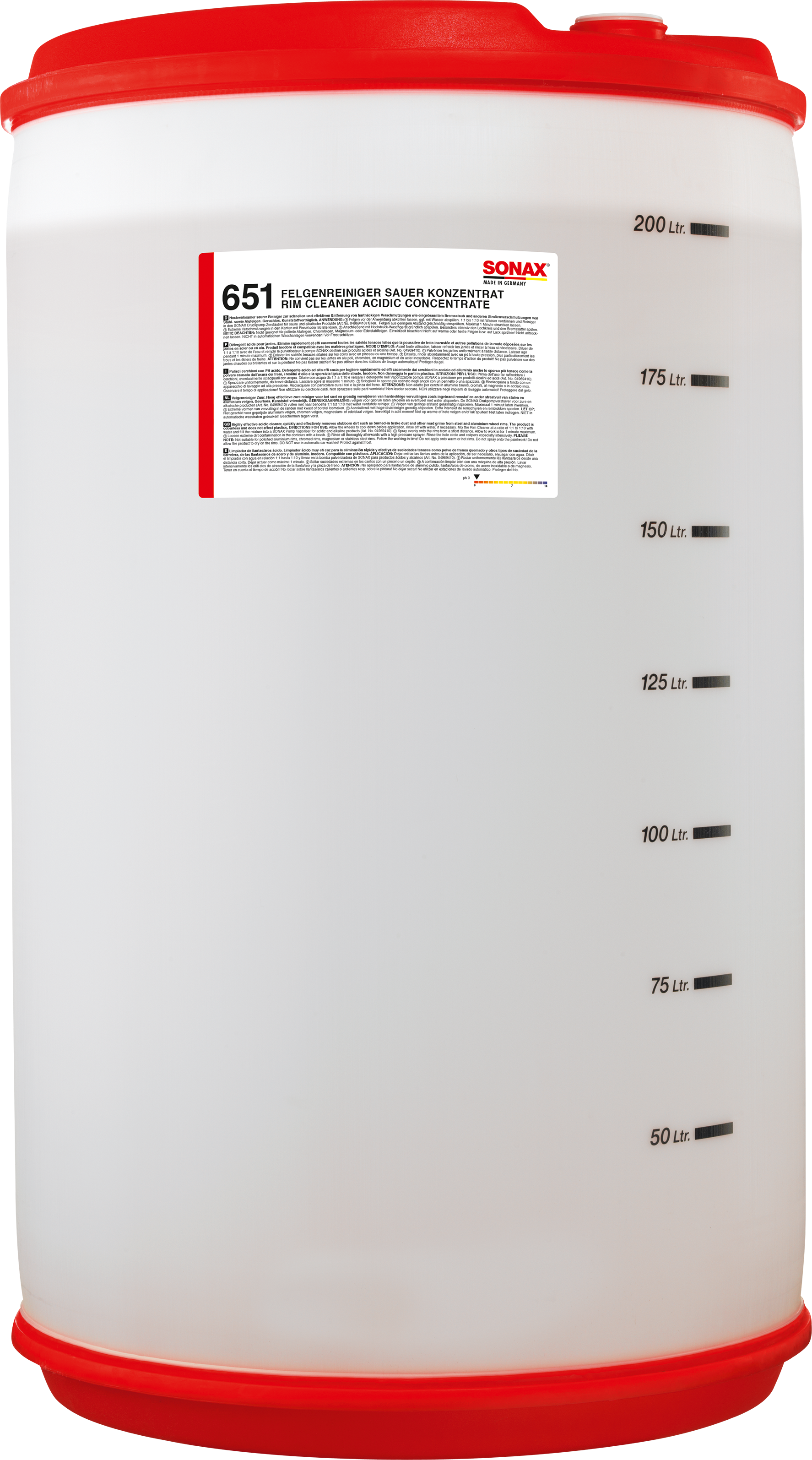 Felgen vor der Anwendung abkühlen lassen, ggf. mit Wasser abspülen. 1:1 bis 1:10 mit Wasser verdünnen und Reiniger in den SONAX DruckpumpZerstäuber für saure und alkalische Produkte füllen. Felgen aus geringem Abstand gleichmäßig einsprühen. Maximal 1 Minute einwirken lassen. Extreme Verschmutzungen in den Kanten mit Pinsel oder Bürste lösen. Anschließend mit Hochdruck-Waschgerät gründlich abspülen. Besonders intensiv den Lochkreis und den Bremssattel spülen.