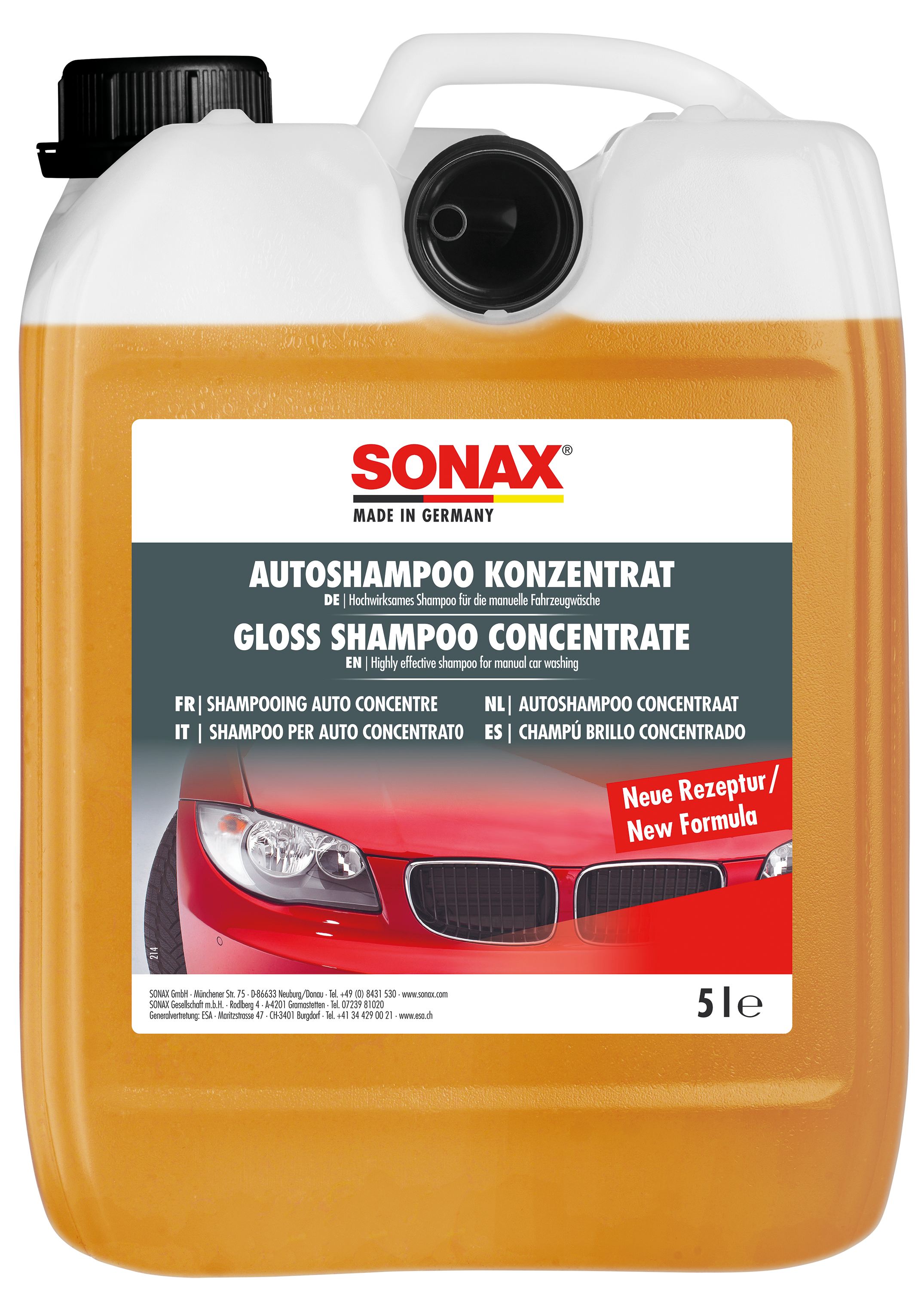 Groben Schmutz vom Fahrzeug mit starkem Wasserstrahl entfernen. Zwei Verschlusskappen SONAX GlanzShampoo in 10 l warmem Wasser auflösen und aufschäumen. Wagen von oben nach unten mit SONAX MultiSchwamm waschen. Anschließend mit viel klarem Wasser abspülen und abledern, da sonst Shampooreste antrocknen können oder Wasserflecken entstehen.