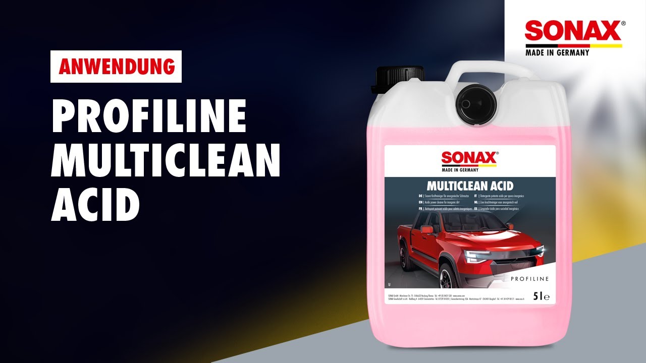 PROFILINE MultiClean alkaline, 1 lKraftreiniger für säurelösliche Schmutze wie Flugrost, sowie Zementrückständen oder Rückständen von Wandfarben. Beseitigt Kalk-und Wasserflecken. Zum „Freiwaschen" von bestehenden Ceramic-Versieglungen, die mit mineralischem Straßenschmutz kontaminiert sind.