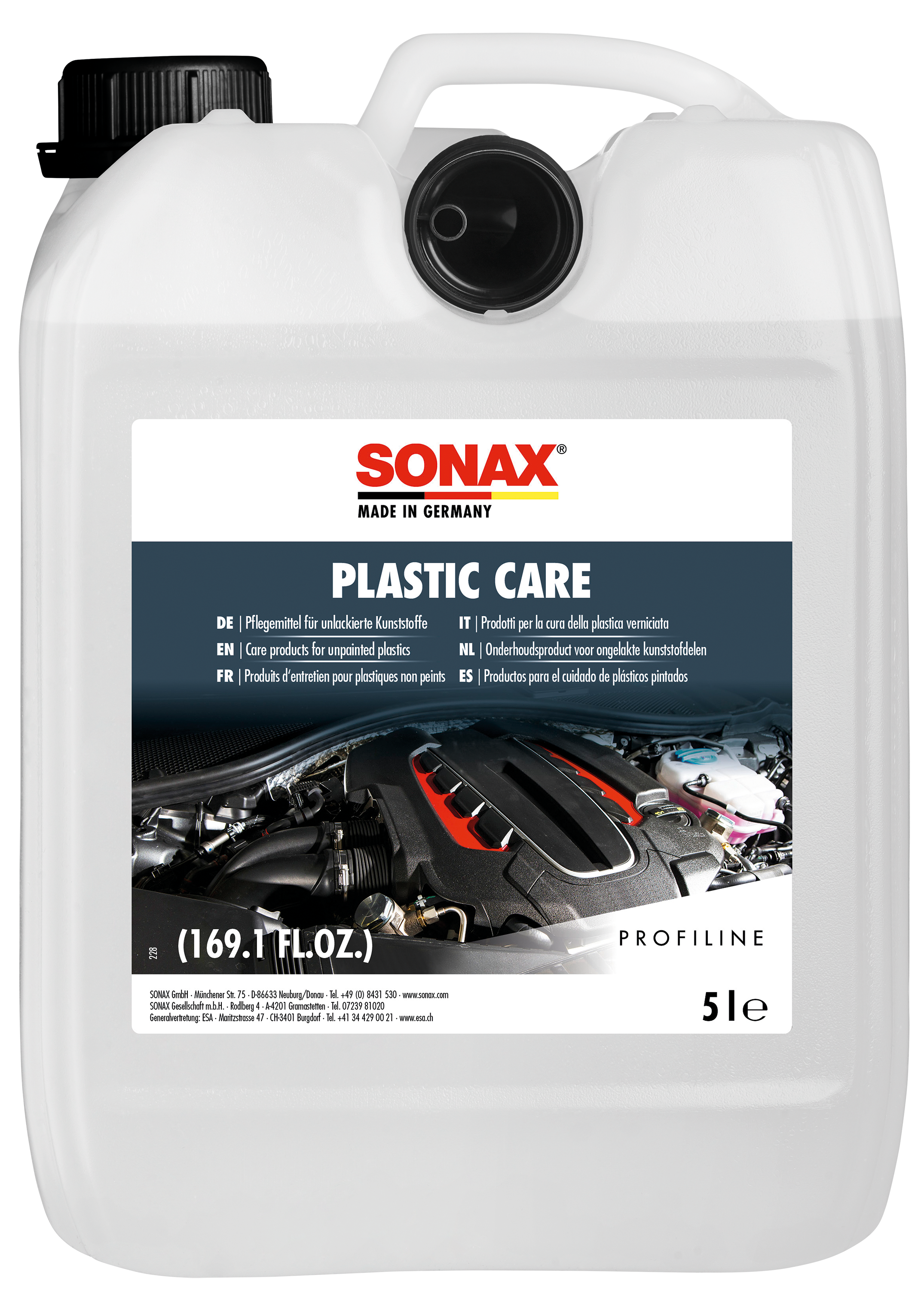 Produkt in einen SONAX Sprayboy füllen. Je nach gewünschtem Glanz kann das Produkt bis 1:2 mit Wasser verdünnt werden. Nicht auf heißen Oberflächen anwenden. Verwendung als Motorraumkonservierer: Direkt nach der Motorwäsche gleichmäßig einsprühen. Überschüssiges Wasser in Mulden und an der Zündanlage vorher mit Druckluft abblasen. Verwendung als Kunststoffpflege: Mittels SONAX MicrofaserPflegePad (04172000) oder SONAX MicrofaserTuch soft touch (04510000) gleichmäßig verteilen.