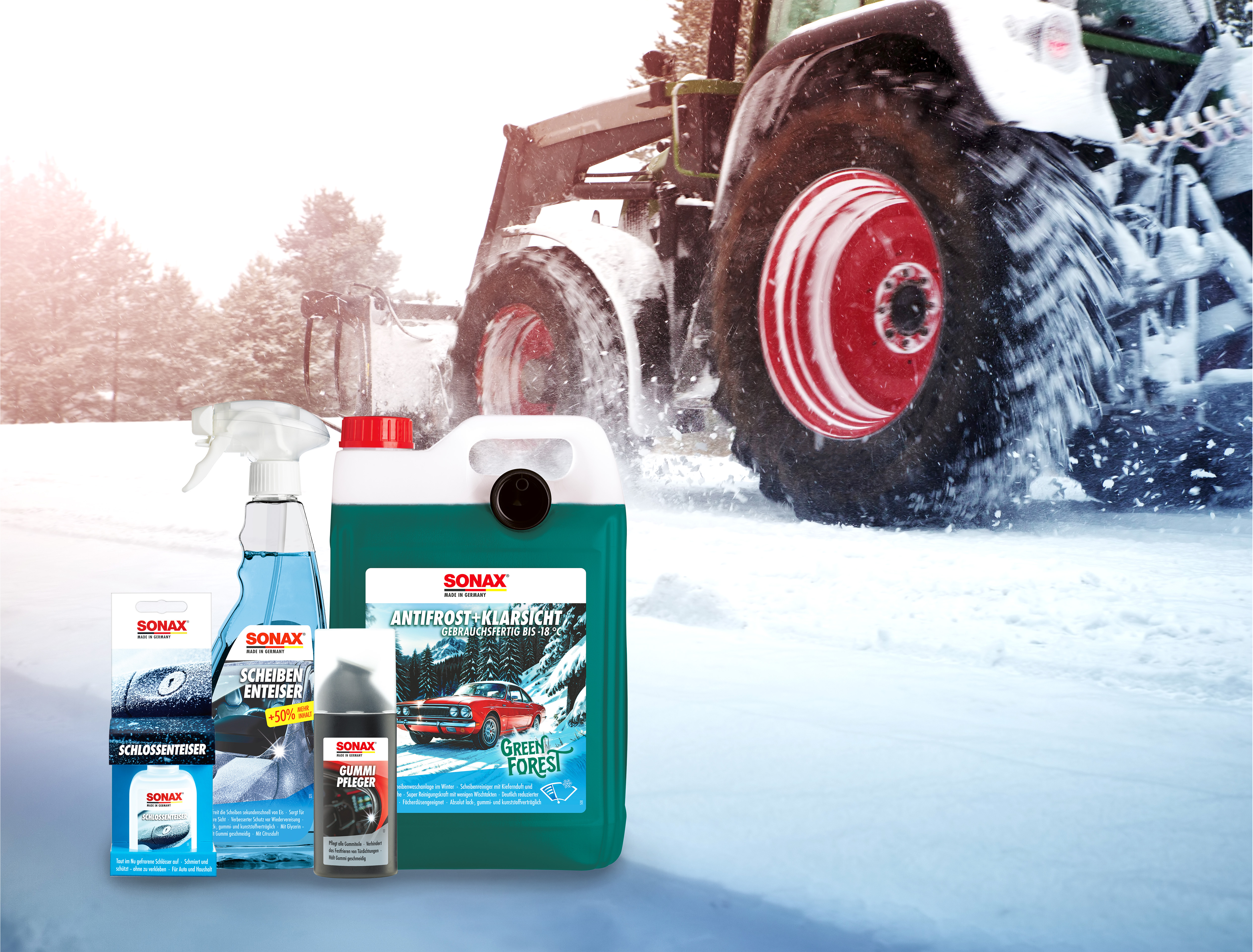 Oktober 2025 - Viele Schlepper sind – im Gegensatz zu den meisten anderen landwirtschaftlichen Maschinen – oftmals das ganze Jahr über im Einsatz und kennen keine Winterpause. Damit Landwirte und Lohnunternehmer in ihren Fahrzeugen auch in der dunklen und eisigen Jahreszeit stets den sprichwörtlichen Durchblick haben, hat Sonax einige nützliche Produkte im Programm.