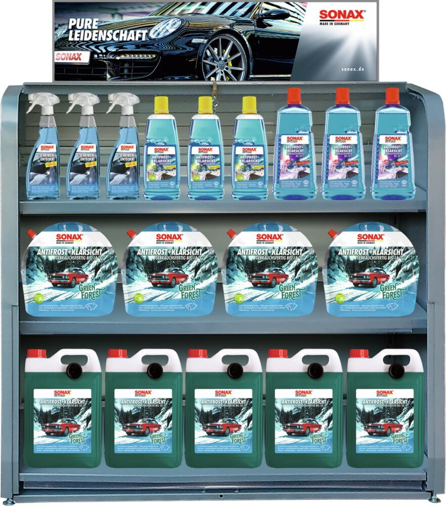 Für neue Impulse im Wintergeschäft sorgt Sonax mit einem gebrauchsfertigen Winterscheibenreiniger, der Shopkunden mit modernem Produktdesign und einer völlig neuen Duftwelt anspricht: „Sonax Antifrost + Klarsicht bis -18 °C Green Forest“ überzeugt mit höchster Reinigungsleistung, sicherem Frostschutz und einem frischen, natürlichen Kiefernduft – ein rundum modernes Produkt, das Funktionalität mit Emotion verbindet und im Shop sofort auffällt.