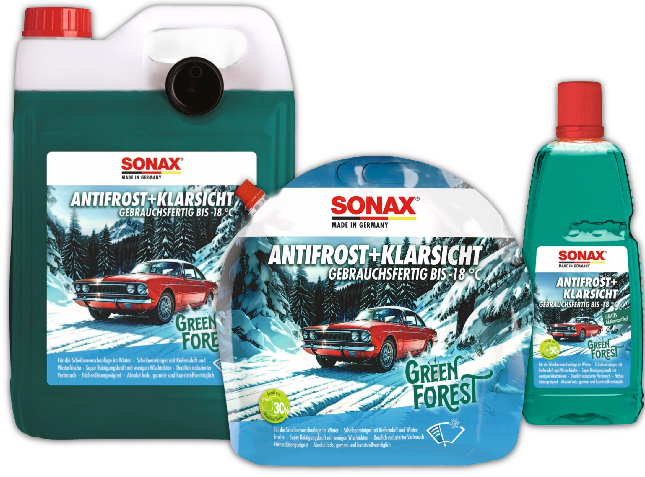 Der Winterscheibenreiniger „Sonax Antifrost + Klarsicht Green Forest“ erweitert in der handlichen 1-Liter-Flasche auch ab sofort das erfolgreiche Sonax Programm für Zugabeaktionen. Die neue Duftvariante eignet sich ideal, um zusätzliche Kaufanreize zu schaffen, das Waschgeschäft gezielt anzukurbeln und Kunden für die Neuheit zu begeistern.